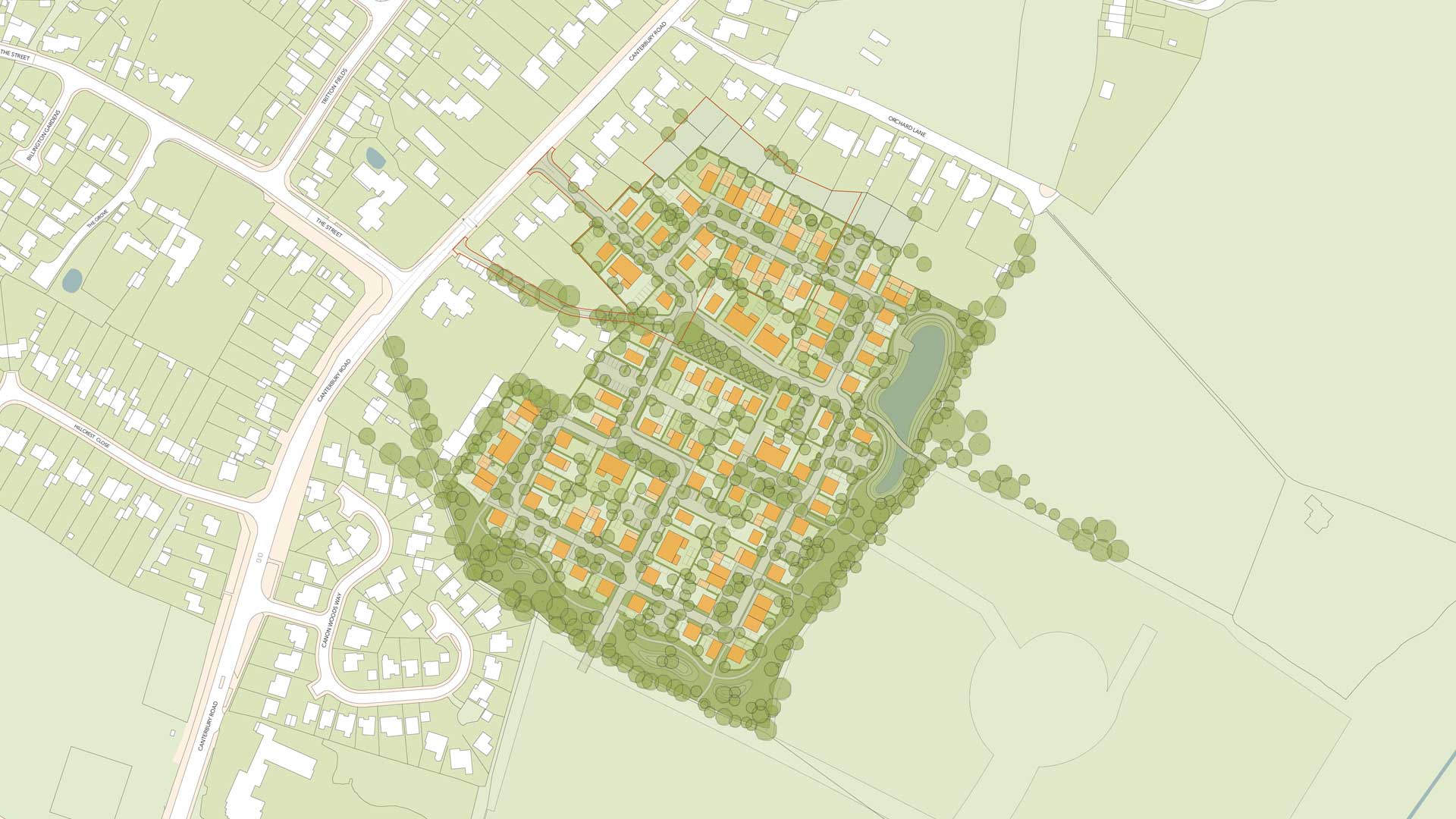 For Phases 2 and 3, comprising 33 and 64 dwellings respectively, an outline planning application has been Resolved to Grant by Ashford Borough Council, with access as the sole matter for consideration, already agreed with the Kent County Council Highways Team. Phase 2 access is proposed via Canterbury Road, utilising part of 399 Canterbury Road, while Phase 3 access will be delivered from Willesborough Road across adjoining land, with the neighbouring landowner obligated via a separate Section 106 Agreement to provide access at no cost to the site.